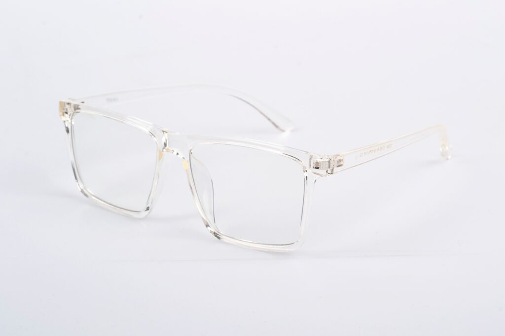 Průhledné brýle s výraznými ostrými hranami z odolného materiálu TR90. Jejich moderní geometrický design vytváří odvážný stylový statement, zatímco lehkost materiálu zajišťuje pohodlí. Ideální volba pro milovníky výrazných a současně pohodlných brýlí.