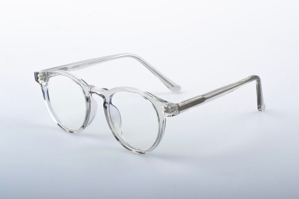 Průhledné šedé brýle s ikonickou kulatou obroučkou a ochranou proti modrému světlu. Jejich minimalistický design a funkční skla nabízejí dokonalý spoj pohodlí a moderního stylu. Ideální volba pro celodenní nošení u digitálních zařízení.